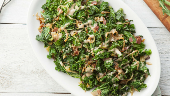 Kale Stems with Caramelized Onions and Bacon