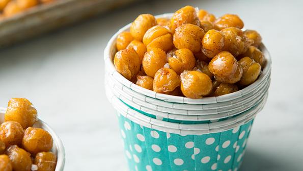 A crunchy treat, these chickpeas (garbanzo beans) are deliciously hard to resist. Chickpeas are naturally full of protein, fiber and antioxidant phytonutrients, so they make snacking downright healthy.