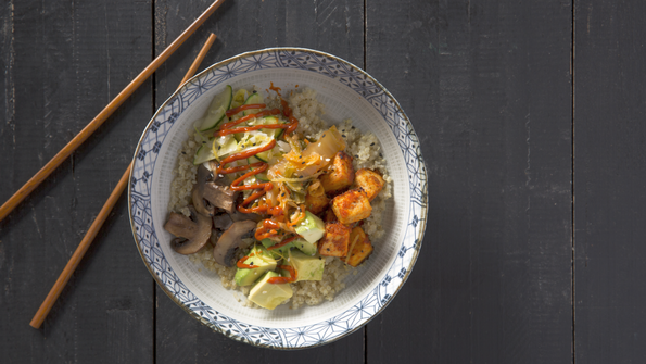 Spicy Korean Quinoa, Veggie & Tofu Bowls