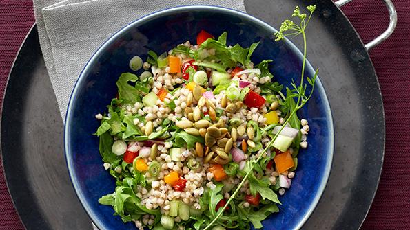 So often at holiday feasts, someone will bring a salad that goes untouched as diners pile their plates with turkey, mashed potatoes and stuffing. This warm, complete-protein salad is a likely candidate to change that—and not only for vegans avoiding Big Bird. The enticing flavors, textures and health benefits are irresistible.