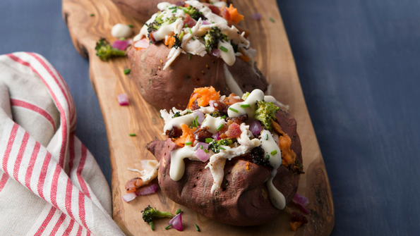 Bacon-Chicken-Ranch-Stuffed Sweet Potatoes
