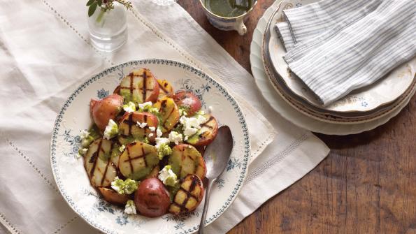 Grilled Potatoes with Chèvre and Cilantro Vinaigrette