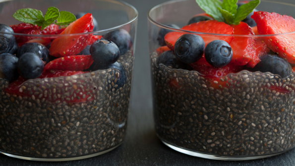 Chia seeds are packed with protein, fiber, antioxidants and calcium. Adding liquid gives the seeds a consistency similar to tapioca. Almond extract and fruit lend this meal a dessert-like flavor, without any added sugar.
