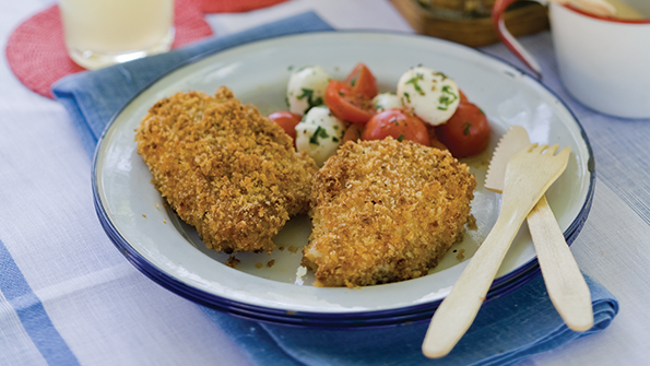 For best results, cook the chicken the same day you plan to eat it, but let cool completely before packing so the coating doesn’t get soggy. Use panko (coarse Japanese-style bread crumbs) for a crispy crust or plain bread crumbs for a “sandy” crust.