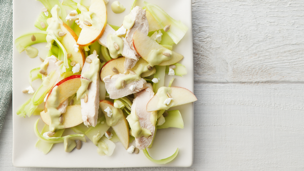 Shaved Broccoli-Stem Salad with Chicken & Lemon-Avocado Dressing