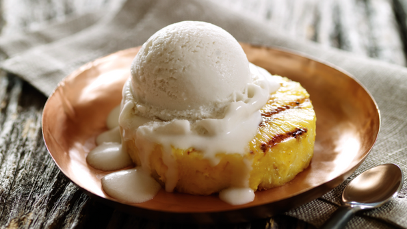 Coconut ice cream with grilled pineapple