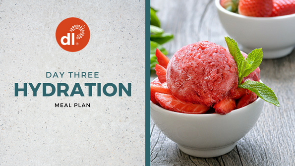 - Strawberry Sorbet: Purée 3 cups strawberry halves in blender, and sweeten with 2 tsp honey. Freeze about 4 hours or until firm. Save half for Day 6 Dinner.