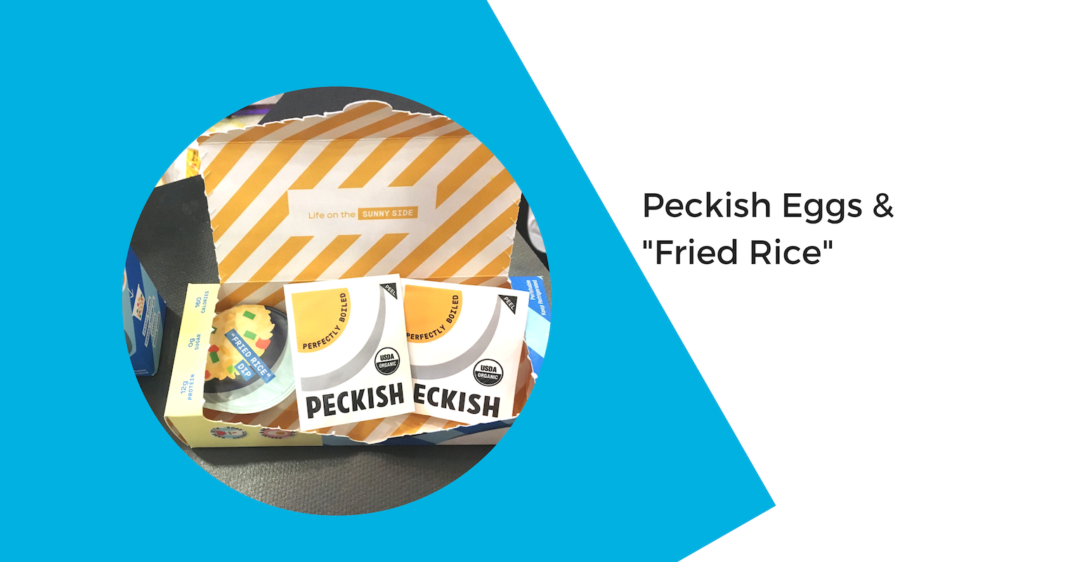 Peckish Peck Pack with Fried Rice Dip. One of the most buzzed-about products at Expo East, this portable box features two individually packaged perfectly-boiled eggs and a crispy, crunchy topping. Dip the eggs into the topping for a protein-packed, whole-food snack.
