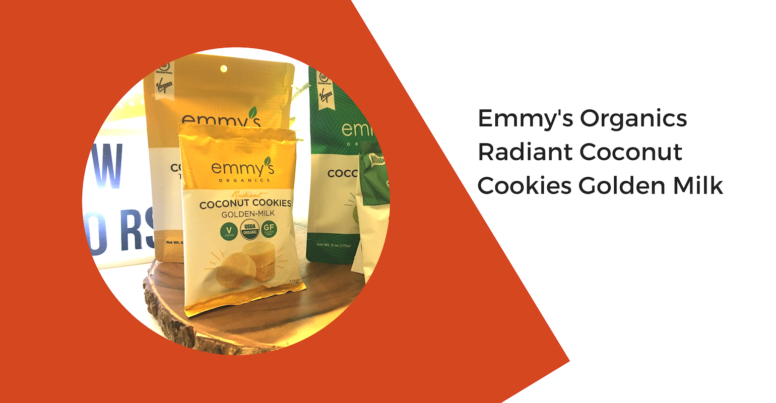 Emmy's Organics Radiant Coconut Cookies Golden Milk. These vegan, USDA Organic cookies feature a functional blend of golden milk ingredients, including turmeric, ginger, black pepper, vanilla and Himalayan salt.