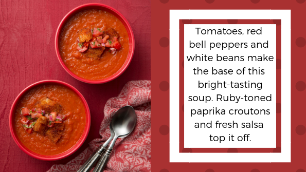 Rainbow recipes for winter By Amy Palanjian and Carsen Snyder | November 29, 2018 1/7 Roasted Red Pepper & Tomato Soup with Paprika-Rubbed Croutons Get the recipe 0 comment 42 Facebook LinkedIn Twitter Pinterest Print