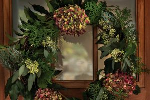 It’s not just for the door! Wreaths can be hung indoors in windows or used on a table with a candle in the center (make sure it’s not too close to the greenery). You can also put a Mason jar with pinecones or ornaments in the middle. Bases can be purchased from craft stores and reused for many years. Similar to the chandelier, collect and attach greenery artfully to the base.