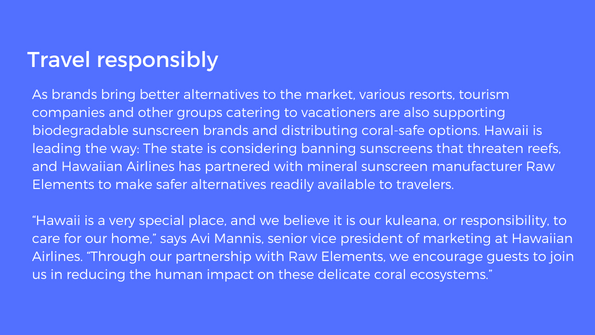 Goldstein works with mineral sunscreen companies, such as Goddess Garden Organics, to raise awareness about the issue of ocean-harming sunscreens and believes that consumer awareness, coupled with research and conscious business, could create sea change for reefs.