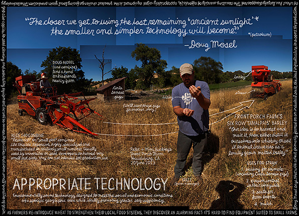 Doug Morsel (pictured above) says that with wheat primarily farmed on an industrial scale, the infrastructure to support the local production of wheat has largely disappeared. The scarcity of affordable, appropriately-sized equipment is the greatest challenge facing local grain production.