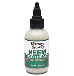 Strange but true: Salt can enhance your oral care routine because it’s a natural disinfectant and can calm any mouth tissue swelling. Vermont Soap combines a handful of natural ingredients that are good for teeth and gums—baking soda, table salt, neem and essential oils—to emulate the ancient practice of gargling with salt water to maintain oral hygiene. Sprinkled onto a wet toothbrush, this formula quells bacteria and strengthens teeth.