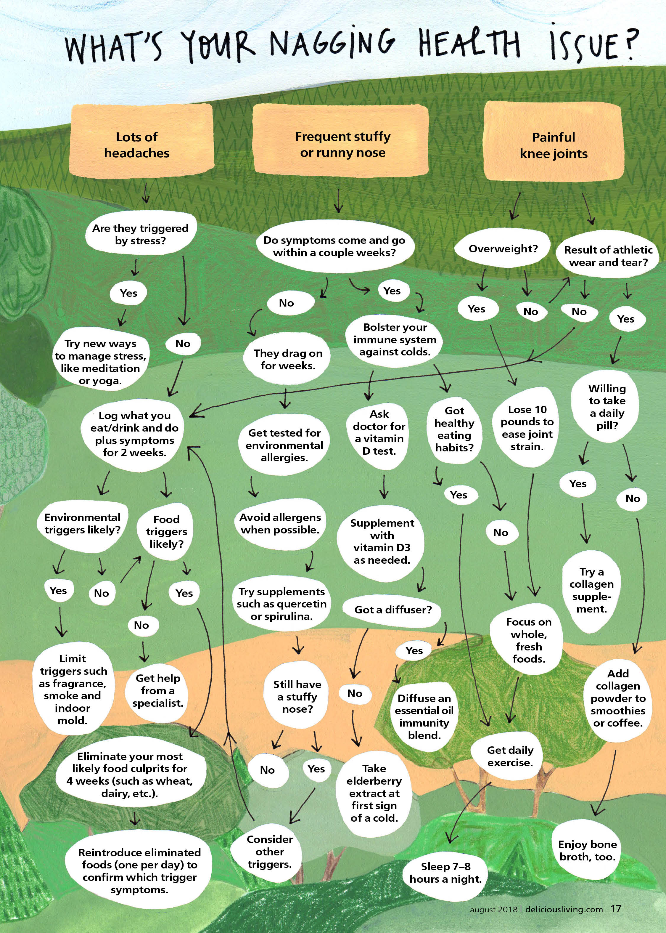 Either way, you don’t have to just live with your symptoms. To illustrate how you might tackle troublesome health problems, we chose three common ones and provided a sample road map of how to navigate a path to wellness.