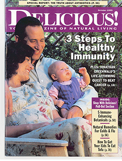What’s also new is that Delicious Living now reaches a lot more people, thanks to our vibrant website and social media outlets. The digital age makes it possible for you to share your recipes, product recommendations, opinions, and stories with like-minded health seekers, buliding an even stronger natural-living community. This month, for example, meet Jonathan Greenwald, who, in our October 1995 issue, related his struggle with non-Hodgkin’s lymphoma at age 45, including his decision to pursue Chinese medicine, diet, fitness, and social support to beat the disease. Today, he’s … well, see the next page (click on "Jonathan's story," below).