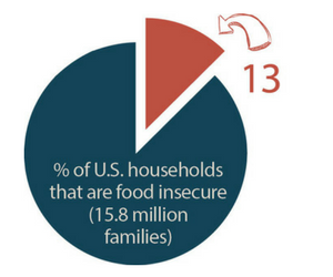 According to a USDA report published in 2016, nearly 13 percent of U.S. households (15.8 million families) are food insecure, meaning it’s difficult for them to access adequate food because of a lack of money and other resources. A lack of healthy and nutritious food, in turn, leads to preventable health issues like diabetes, anemia and a weakened immune system, which then leads to the need for good health care, something these families also cannot afford. Chronic hunger also decreases mental focus, which translates to poor learning experiences for hungry children in the classroom; without essential nutrients, young brains cannot properly develop, harming learning abilities over the long term.