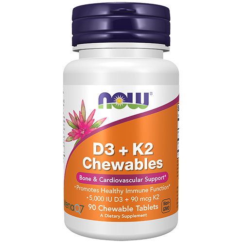 | Enjoy the benefits of Whole Food Synbiotic, a prebiotic and probiotic! This whole food supplement provides 10 billion live probiotic cultures per capsule, cultured in a fermented prebiotic matrix of organic apple, blueberry, cranberry, broccoli, carrot, kale, parsley, spinach, and plant-based inulin. This blend optimizes probiotic and postbiotic efficacy for optimal digestion and immune health. wholeearthsea.com | NOW® D3 + K2 Chewables support the health of bones, teeth, and the cardiovascular system. Vitamin D3 works with calcium to support bone health and recent studies indicate it’s also important for immune system health. MenaQ7® MK-7 is a unique soy-free, bioavailable form of vitamin K2 that plays a critical role in arterial health. nowfoods.com |