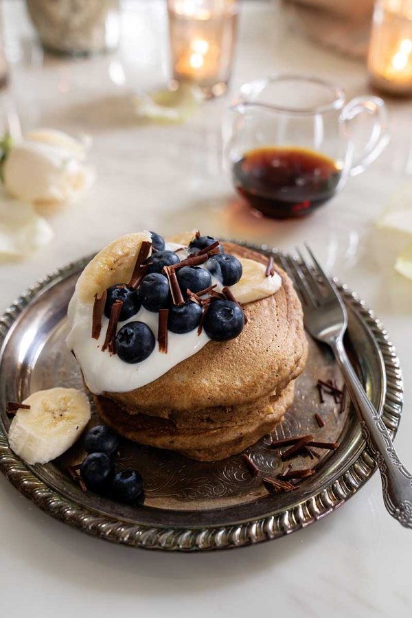 - Serve pancakes warm with Mom’s glam toppings of choice.