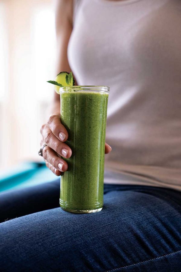 Deep, dark green, and mildly sweet, this healthy smoothie tastes like a treat. And since it makes more than one large smoothie, you can drink one and save the rest for later.
