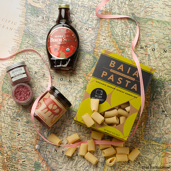 Baia Pasta. This Oakland, California company makes artisanal, coarser-texture pasta with U.S. grown, organic wheat. Beautiful boxes, too.