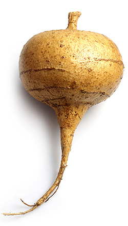Pronounced HICK-ama, this tuber, popular in Central and South America, looks like potato's chubbier cousin, but its flesh is crisper, sweeter, and excellent eaten raw. It's also a good soruce of fiber, vitamin C, folate, and potassium.