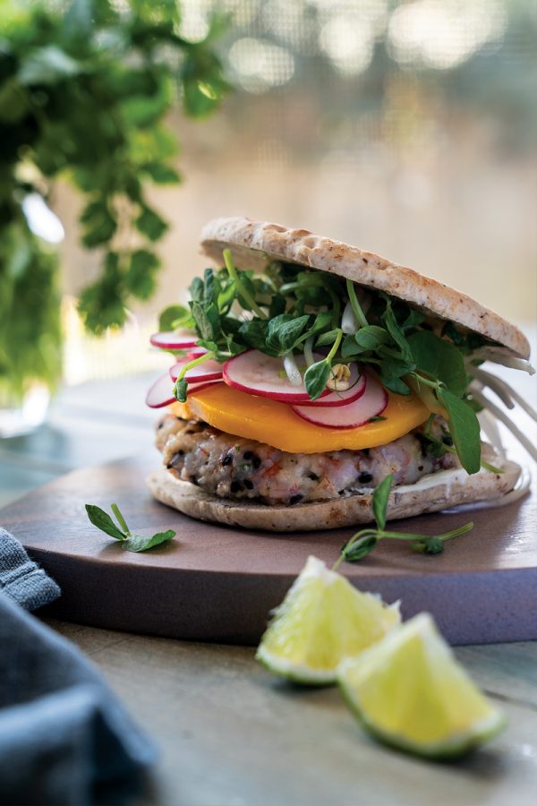 Next stop, Asia! This shrimp burger combines classic Asian flavors with unique toppings for rich umami flavor with the saltiness of the ocean. Whether served on a bun or over rice in a more traditional Asian-style meal, try some unique miso yogurt or wasabi mayo dressing for a fabulous flavor bomb.