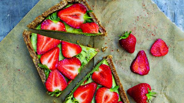 - Meanwhile, to make the "cheesecake" filling, in a blender or food processor, purée the avocado flesh, basil, the juice of three limes, 4 tablespoons of honey and the melted coconut oil at full speed until smooth. Taste. If it needs more zing, add another squeeze of lime juice to the mix. If you prefer more sweetness, add an extra bit of honey. Spoon the filling over the frozen base and chill in the fridge for 1 hour. The cake will last for three days in the fridge like this.