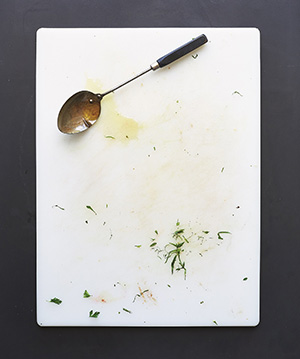 Another detail that I love is the photograph that accompanies the opening page of every chapter. It's a simple cutting board, and each one is appropriate for that section. For example, the cutting board image that opens the "What's For Dinner?" section shows what would be left behind after preparing Amanda's famous Lusty Lemon Chicken. The cutting board next to the "More Than A Salad" opener is surely stained with the juices of a red beet and adorned with minced chives. I am at home!