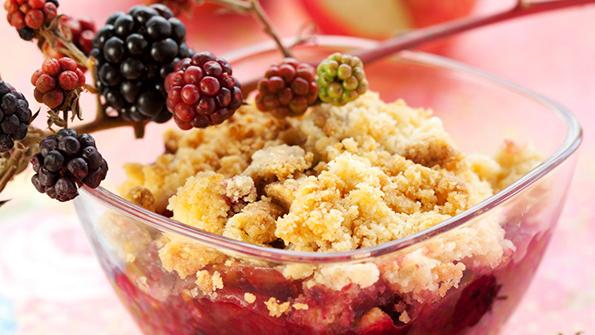 This healthy dessert is easy to customize; feel free to use any sliced fruit, alternative GF flours, and your favorite nuts.