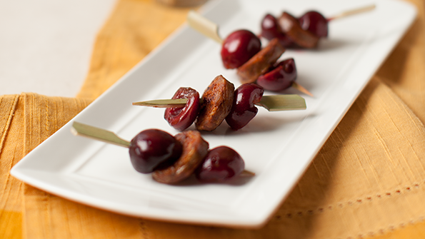 “This is my go-to quick and easy tapa during cherry season,” says chef Frank Magaña. Small servings on toothpicks are perfect for parties as a delectable sweet-savory nibble.