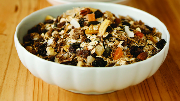 5. Add dried fruit when mixture cools. Store in an air-tight container.