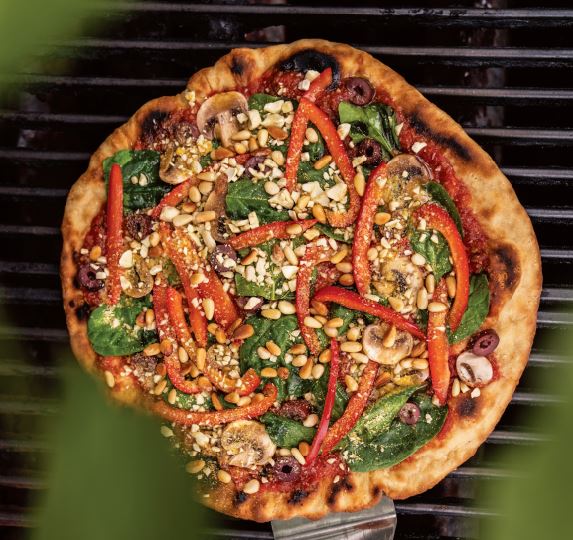 Barbecued pizzas have a smoky, hearty authenticity. The lightly charred crust is a perfect base for any topping, especially loads of veggies and DIY dairy-free cheese, as is the case with this Grilled Pizza with Cashew Parmesan. (FYI, barbecued pizza crust is equally delicious spread with pesto and a smattering of cashew cheese and cut into fingers after grilling.)