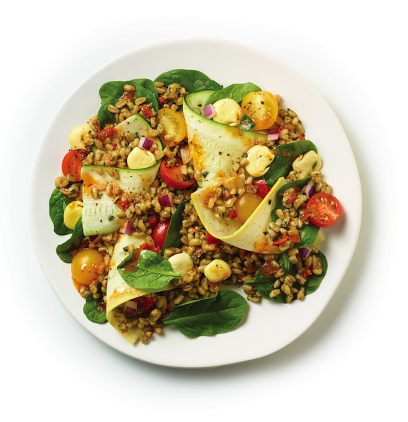 A Zoës kitchen vegetarian specialty, you can re-create this robust salad at home, too. First, make a “Pesto Farro” by boiling farro until al dente; then combine with chopped roasted tomatoes, basil pesto, lemon juice and extra virgin olive oil.