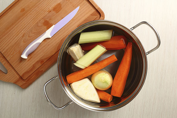 It’s easy and economical to make vegetable stock. Just save all vegetable trimmings left over from your cooking; keep them in plastic bags in the freezer until you have at least 8 cups.