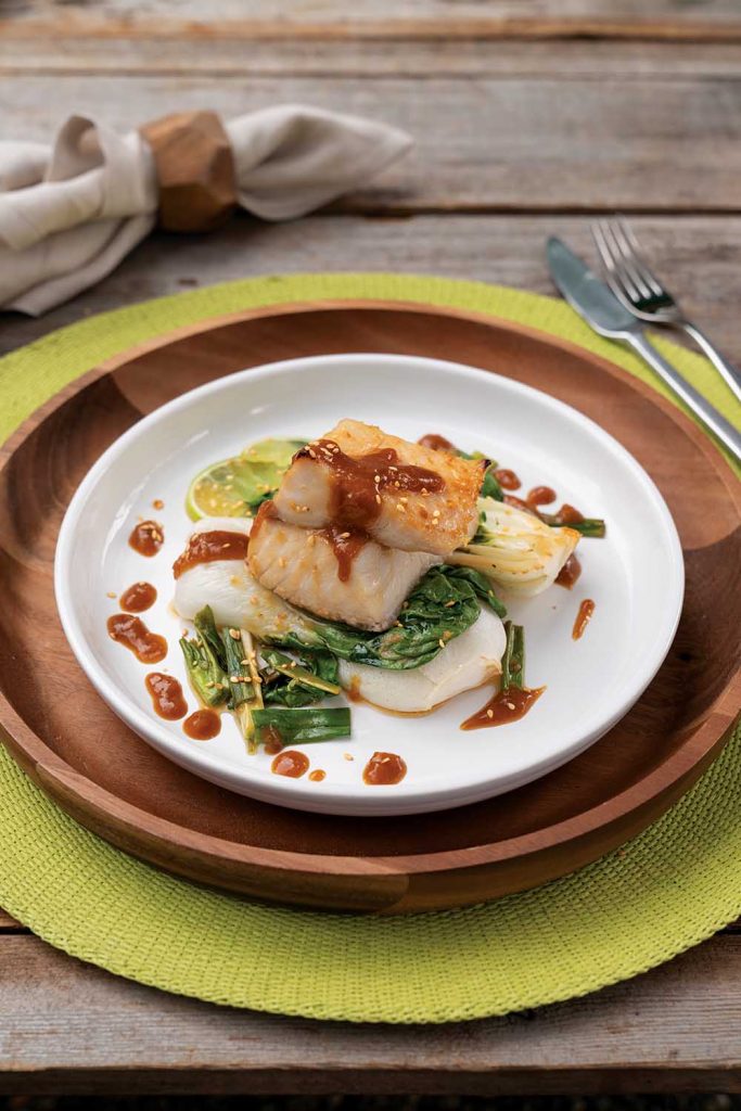 Roasted Black Cod or Turbot with Bok Choy, Maple, and Miso