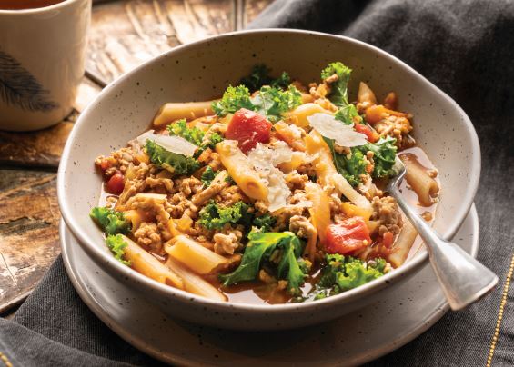 A hearty pasta dinner need not require multiple pots. For less effort and post-meal cleanup, cook everything together in this One Pot Poultry, Sweet Potato, and Kale Pasta.
