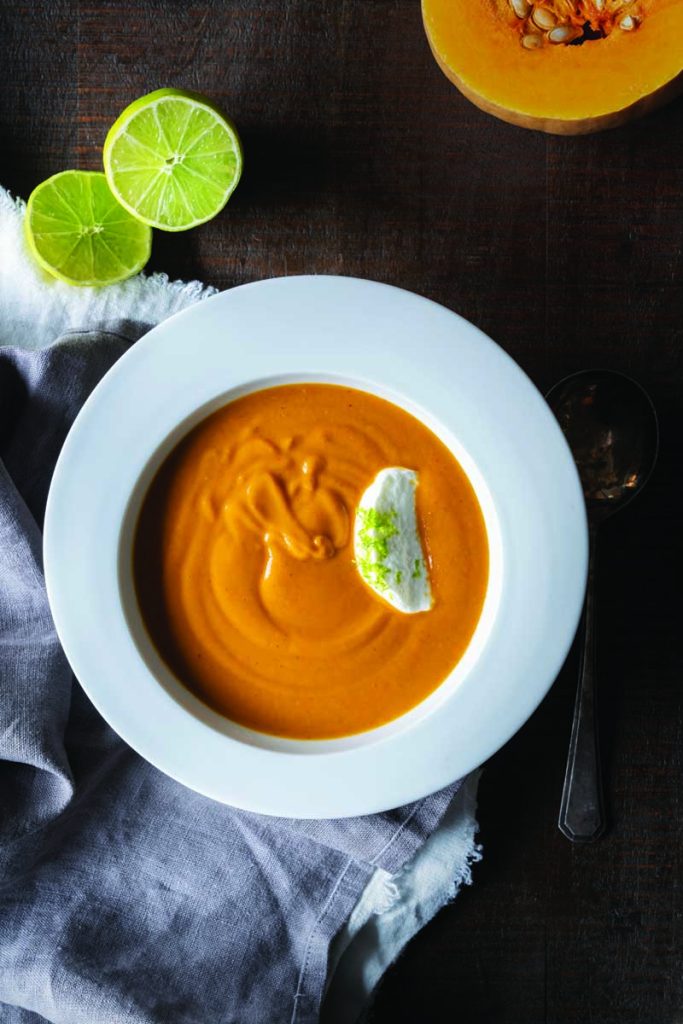 Butternut Squash Soup with Harissa and Lime Yogurt