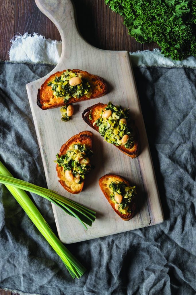 These “fancy” beans on toast provide a quick and easy dinner that comes together in minutes, all in one pan. Toast your favorite crusty loaf, pile it high with this moreish mixture, and you’re all set with a nourishing and tasty dinner or lunch. A base of leeks, shallot, and garlic is heightened with the zingy flavor of miso and mustard before adding beans and kale and a bit of vegetable stock.