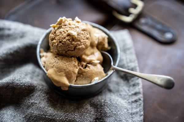 - In small bowl, mix cashews and water; add contents of probiotic capsules (discarding empty capsule shells) or probiotic powder and mix well. Cover and let sit for 12 hours. In blender, combine cashew mixture with almond milk, squash, dates, cinnamon, ginger, cloves, and nutmeg and blend until mixture is smooth. Pour into ice cream maker and follow manufacturer’s instructions. Serve immediately.