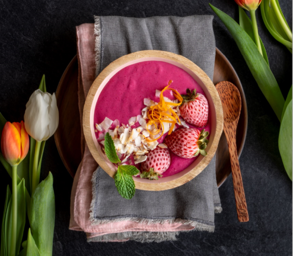 Grab a spoon (yes, a spoon!) and dig into this vibrant and refreshing Red Velvet Cheesecake Smoothie Bowl. It’s your answer to a 10-minute breakfast and getting in a serving of veggies, before noon. You can blend in either a raw or a cooked beet, with the latter being a better option if you’re using a blender without much horsepower.