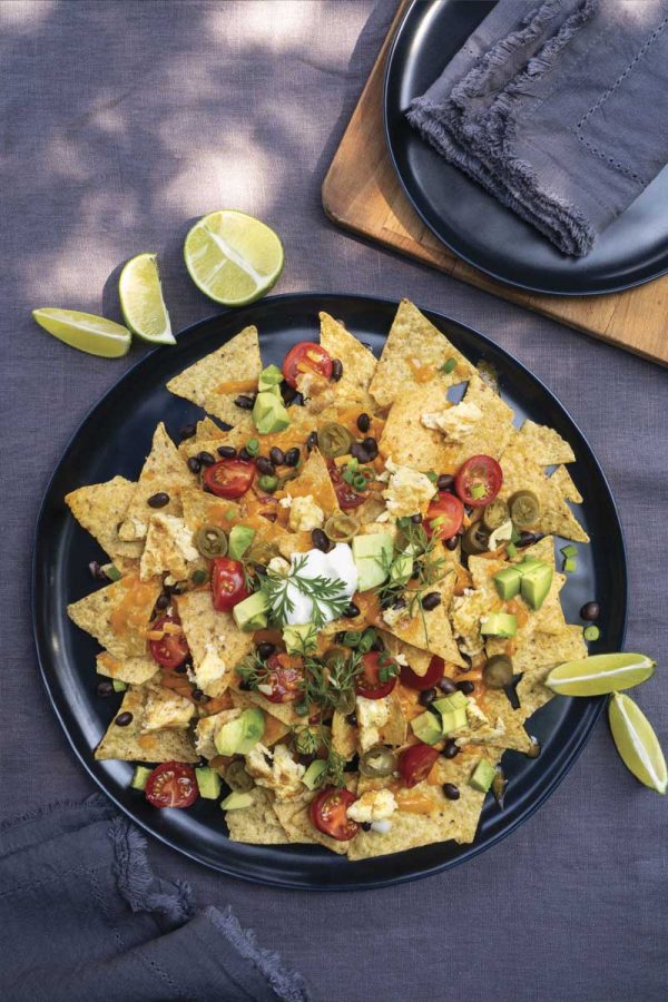 We took classic cheesy nachos and gave them a breakfast vibe with scrambled eggs and then took them to the next level with satisfying add-ins including beans and creamy avocado. Scrambled Nachos are a perfect dinner to share around the table where a bit of mess is to be celebrated. You can also serve it with your favorite salsa.
