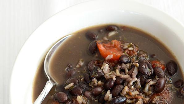 This unique take on traditional, antioxidant-rich black bean soup adds whole-grain brown rice for hearty texture and even more nutrients. Reduce the amount of crushed red pepper if you like less heat. Serve with a dollop of plain Greek yogurt.