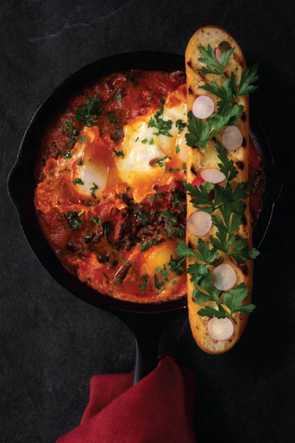 If you want to save yourself time on the day of preparation, you can make the tomato sauce in advance. It can be refrigerated up to a day ahead. Simply heat slowly on the stovetop and bring up to a simmer when you’re ready to cook the eggs.