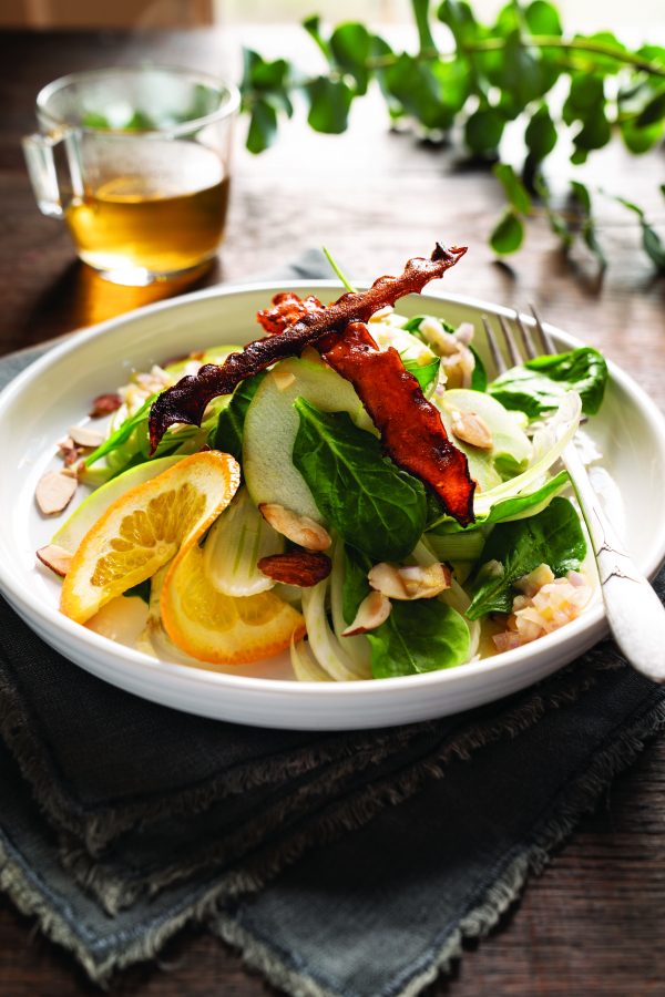 You get the best of all worlds with this crispy fresh Stacked Celery, Fennel, Baby Spinach, and Apple Salad with Citrus Vinaigrette salad. Filled with goodness, containing crisp celery and fennel and fresh baby spinach, it’s chock full of healthy anticancer phytochemical compounds. Add a side of grilled salmon for a hit of beneficial omega-3s and protein.