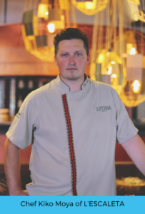 L’ESCALETA received its first Michelin Star in 2000, when Moya’s father and uncle were at the helm, and its second in 2016 after it had been passed down to their sons: Moya and his cousin, the restaurant’s sommelier. Moya believes the work of a chef today is to show your guests your environment, which is why he chooses to work with local farmers to bring the highest quality ingredients to his kitchen.