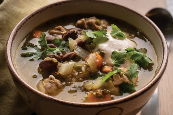 This nutritionally balanced Tangy Green Soup/Chili gets a hit of sweetness courtesy of sauteed onion, plus tanginess from the salsa verde. And it’s easy to reheat leftovers of this soup-chili hybrid for another quick meal. To make it vegetarian, swap out the chicken for extra beans.