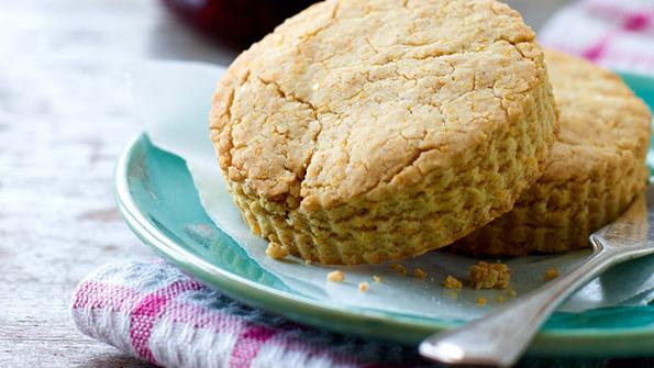These tender biscuits are easy to make, and they taste wonderful alongside a bowl of soup or by themselves with a spot of jam. We recommend King Arthur Flour’s nut-free GF blend, but you can substitute your own mix or favorite brand. Some GF fl our blends do not include xanthan gum, but if yours does, omit from the ingredients below.