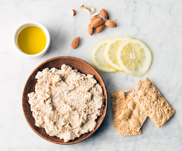 Craving that rich taste and creamy texture, but not willing to resort to traditional cheese? Marcy Miller, cofounder of Organic Sandwich Company in Boulder, Colorado, gave us this easy recipe for raw almond "feta"—made with lemon juice, garlic and olive oil. Serve it to special diet guests at an upcoming soirée (it's vegan, paleo and gluten free), or whip up a batch at home for a tasty and filling snack.