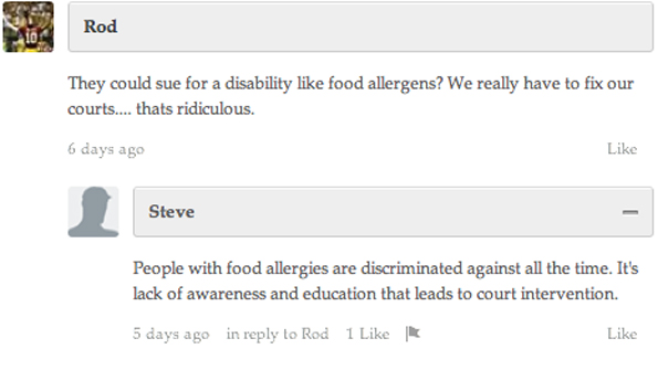 What’s your opinion: Is "disability" too strong a category for food intolerance? What's a reasonable expectation for places that serve food?